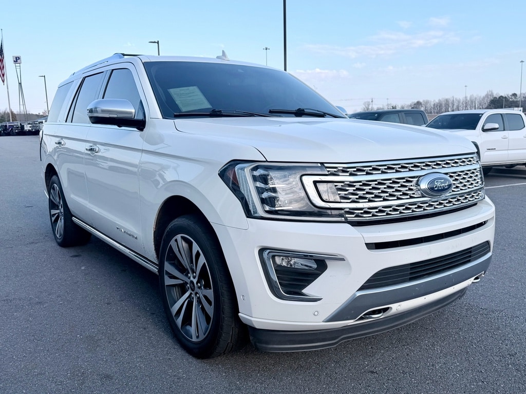 2021 Ford Expedition Platinum 4WD V6 3.5L â" Jackson, GA. This premium full-size SUV delivers commanding presence, refined comfort, and impressive capability at the best price in the area. Powered by a robust 3.5L EcoBoost V6 and four-wheel drive, the Ford Expedition Platinum offers confident towing, smooth acceleration, and composed handling for family road trips or daily driving. Step inside to find luxurious leather seats, heated steering wheel, and a thoughtfully appointed cabin with seating for up to eight and versatile cargo configurations. The factory navigation system provides clear directions and seamless routing for long drives, while XM Radio keeps everyone entertained with commercial-free music, news, and sports. Technology and convenience features are abundant, and the premium trim adds upscale touches that elevate every journey. Safety-conscious buyers will appreciate the CARFAX Clean Report included with this vehicle, confirming a reliable history and giving added peace of mind. With a strong service record and well-maintained condition, this Ford Expedition Platinum is ready to serve Jackson, GA drivers who demand space, comfort, and capability. Competitive pricing and exceptional value make this the best-priced Ford Expedition Platinum available locally. Schedule a test drive today to experience the performance and refinement of this 2021 Ford Expedition Platinum 4WD V6 3.5L â" the smart choice for families and adventurers alike.