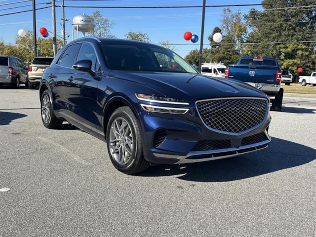 Experience luxury and performance with the 2025 Genesis GV70 AWD 2.5T Standard. This dark blue SUV combines sophisticated design with advanced technology, featuring a 300hp turbocharged engine and 8-speed shiftable automatic transmission for a smooth, responsive drive. Enjoy peace of mind with top safety features, including Intersection/junction Turn Automatic Emergency Braking, Lane Keeping Assist with Blind Spot Integration, Rear Cross Traffic Alert, and Adaptive Cruise Control. Stay connected with a 14.5-inch infotainment screen, wireless Apple CarPlay and Android Auto, and Genesis Connect smart device app compatibility. Comfort is at your fingertips with heated front seats, leatherette upholstery, power-adjustable seating, automatic climate control, and a power-operated rear liftgate. Additional highlights include a fingerprint recognition push-button start, sensor-activated rear trunk, and premium audio system. With full-time AWD and a host of driver assistance features, the GV70 offers confidence and capability for every journey. Discover why the Genesis GV70 sets the standard for modern luxury SUVs.