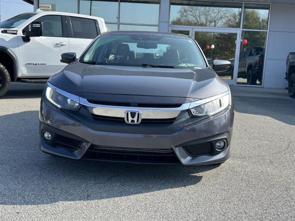 Experience style and reliability with this dark gray 2016 Honda Civic EX-L Sedan, equipped with Honda Sensing for advanced safety. Enjoy luxurious leather-trimmed upholstery, heated front seats, and a power moonroof for year-round comfort. Stay connected with Apple CarPlay, Android Auto, and HondaLink on a 7-inch touchscreen display. Drive with confidence thanks to adaptive cruise control, lane keeping assist, and front automatic emergency braking. Other highlights include remote engine start, multi-view rear camera, blind spot camera, push-button start, and aluminum alloy wheels. The turbocharged engine and CVT deliver a sporty yet efficient drive, while features like automatic climate control, proximity entry, and premium audio with Pandora integration add convenience and enjoyment. This Civic EX-L blends sophistication, tech, and safety for an unbeatable value. Schedule your test drive today!