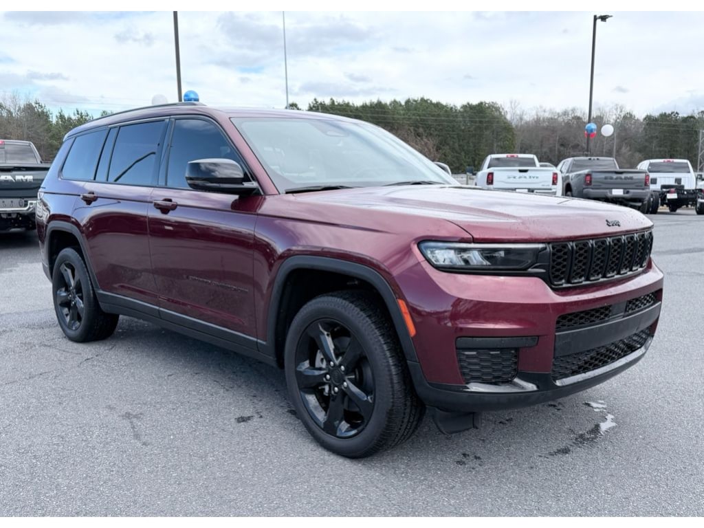 Discover exceptional value with this 2023 Jeep Grand Cherokee L Altitude 4WD, now available in Jackson, GA. Powered by a reliable V6 3.6L gasoline engine, this three-row SUV blends strong performance with refined comfort for families and adventurers alike. The Altitude trim adds distinctive styling and premium amenities, including leather seats and a heated steering wheel for year-round comfort. Remote start ensures cabin readiness on chilly mornings, while forward collision warning enhances safety and confidence behind the wheel. This Jeep Grand Cherokee L comes with a CARFAX Clean Report, reflecting a well-maintained history and dependable ownership record. Four-wheel drive capability and the robust V6 deliver confident handling in diverse road and weather conditions, making it an ideal choice for commuters, weekend explorers, and those who need flexible passenger and cargo space. Interior features prioritize convenience and comfort, and the thoughtful tech and safety suite provide peace of mind for every trip. Located in Jackson, GA, this 2023 Jeep Grand Cherokee L Altitude is competitively priced to be the best value in the area. If you're searching for a stylish, capable SUV with modern safety features and a clean vehicle history, this Jeep Grand Cherokee L offers an outstanding combination of performance, comfort, and price. Schedule a test drive today to experience it firsthand.
