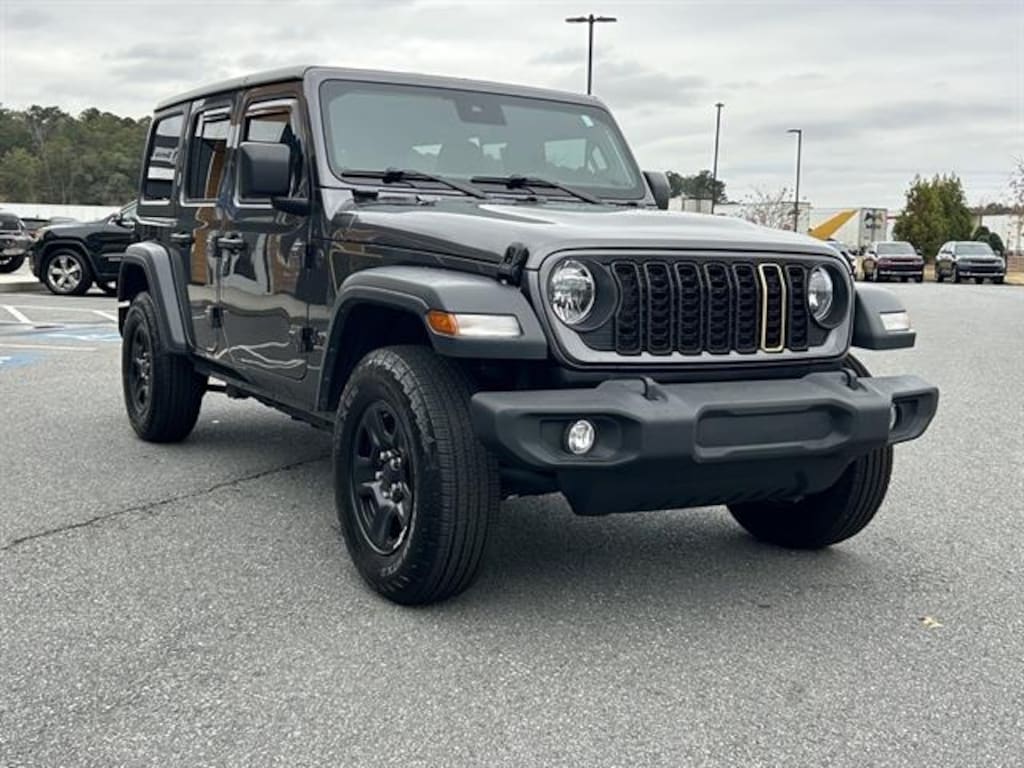 Hit the road or the trail in this sleek gray 2024 Jeep Wrangler Unlimited Sport S 4x4! Powered by a robust 2.0L Turbo I4 engine with an 8-speed automatic transmission, this Wrangler is ready for adventure. Enjoy the flexibility of a removable soft top, and stay connected on every journey with wireless Apple CarPlay, Android Auto, Bluetooth, and a 12.3-inch Uconnect touchscreen. Key options include the Quick Order Package 22S, Convenience Group, adaptive cruise control, front automatic emergency braking, and rearview camera for added safety. The interior features comfortable cloth seats, contrast stitching accents, leatherette steering wheel, and ample cargo space with a rubber/vinyl cargo area mat. Practical touches like heated side mirrors, push-button start, and SiriusXM satellite radio make every drive enjoyable. Tackle any terrain confidently with front and rear tow hooks, skid plates, and part-time 4WD. This Wrangler is ready for your next adventure-schedule your test drive today!