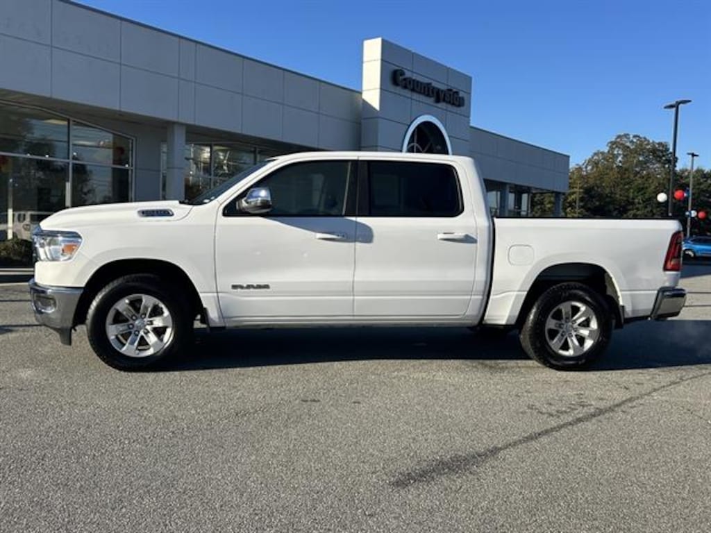 Discover the power and luxury of the White 2024 Ram 1500 Laramie 4x4 Crew Cab. Equipped with a robust HEMI eTorque 5.7L V8 engine and an 8-speed automatic transmission, this pickup delivers impressive performance and capability. Enjoy premium features like leather-trimmed bucket seats, heated and ventilated front seats, a heated steering wheel, and power-adjustable driver and passenger seats with lumbar support. Stay connected with an 8.4-inch Uconnect touchscreen, wireless Apple CarPlay/Android Auto, Wi-Fi hotspot, and SiriusXM satellite radio. Advanced safety features include front automatic emergency braking, a rearview camera, pre-collision warning system, and trailer stability control. The Laramie shines with chrome accents, LED lighting, aluminum alloy wheels, power-folding mirrors, and a power-locking tailgate. With remote engine start, smart device integration, customizable digital instrument cluster, and ample storage, this Ram is ready for work or play. Experience comfort, technology, and strength in one remarkable pickup-schedule your test drive today!